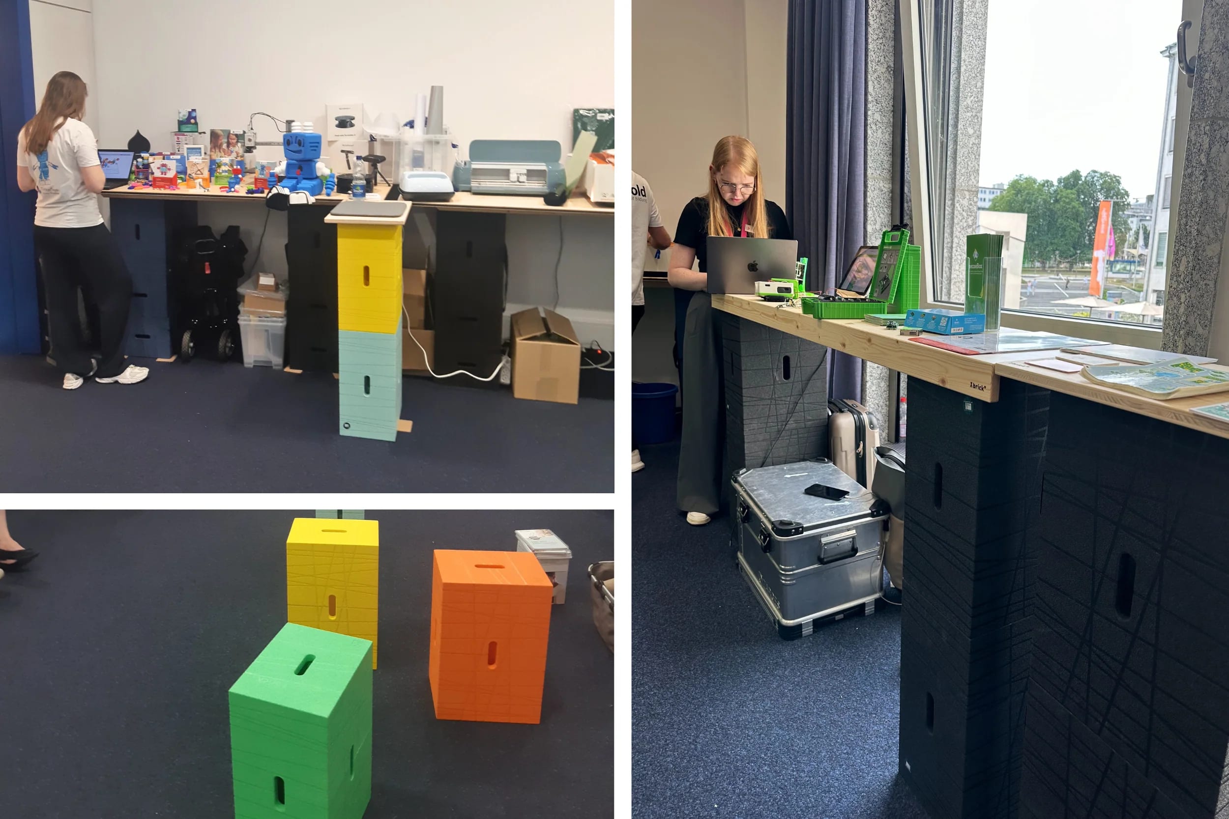 FUTUROMUNDO stand ganz im Zeichen von Zukunftsfragen: Wie wollen wir lernen, arbeiten und leben? Rund 200 internationale Speaker teilten an über zehn Locations rund um die Stuttgarter Liederhalle ihre Visionen. Lehrkräfte, Schüler:innen, Künstler:innen, Unternehmer:innen und Vertreter:innen aus Politik und Verwaltung kamen zusammen, um Bildung, Wirtschaft und Gesellschaft neu zu denken – praxisnah, kreativ und interdisziplinär. Dabei konnten Besucher:innen in der Maker Space Area selbst aktiv werden und mit eigenen Ideen Armbänder, Schlüsselanhänger, Untersetzer, etc. mit Plotter, Lasercutter, 3D-Drucker oder mit Holz umsetzen.