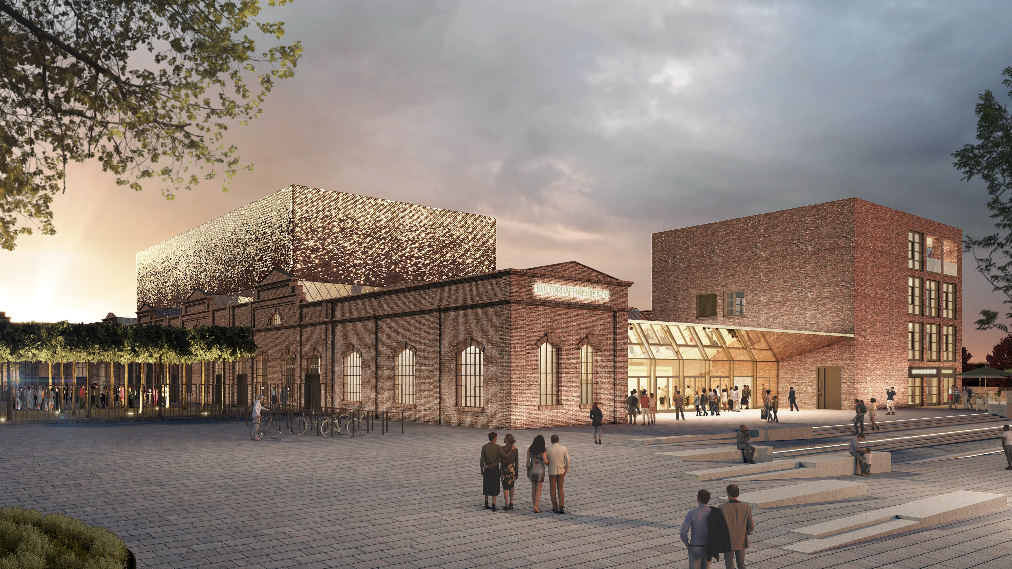 An der Monheimer Rheinpromenade wird die denkmalgeschützte „Alte Fassabfüllhalle“ zu einem modernen, multifunktionalen Kulturzentrum umgebaut – der Kulturraffinerie K714. Das „K“ steht für die Kultur, die hier zu Hause sein wird, und die „714“ für den Rheinkilometer, an dem sie liegt. Mit zwei Veranstaltungssälen, mehreren Foyers sowie zahlreichen Garderoben- und Tagungsräumen wird die Halle eine einzigartige Atmosphäre bieten. Dank hoher Multifunktionalität und akustischer Perfektion wird sie der ideale Ort für unter anderem Theater, Oper, Konzert, Tanz, Performance und große Brauchtumsveranstaltungen wie den Karneval.