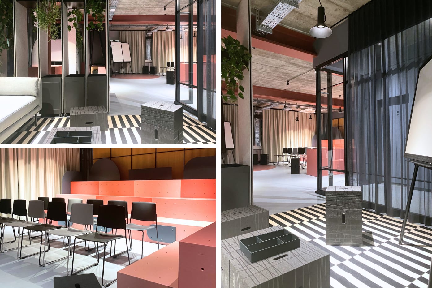 flomo und Xbrick® unterstützen dieses Konzept als mobiles, multifunktionales Mobiliar. Ihre flexible Einsetzbarkeit ermöglicht spontane Raumveränderungen und fördert eine dynamische Arbeitsatmosphäre. So entsteht ein wandelbarer Raum, der Bewegung, Kreativität und kollaboratives Arbeiten unterstützt.