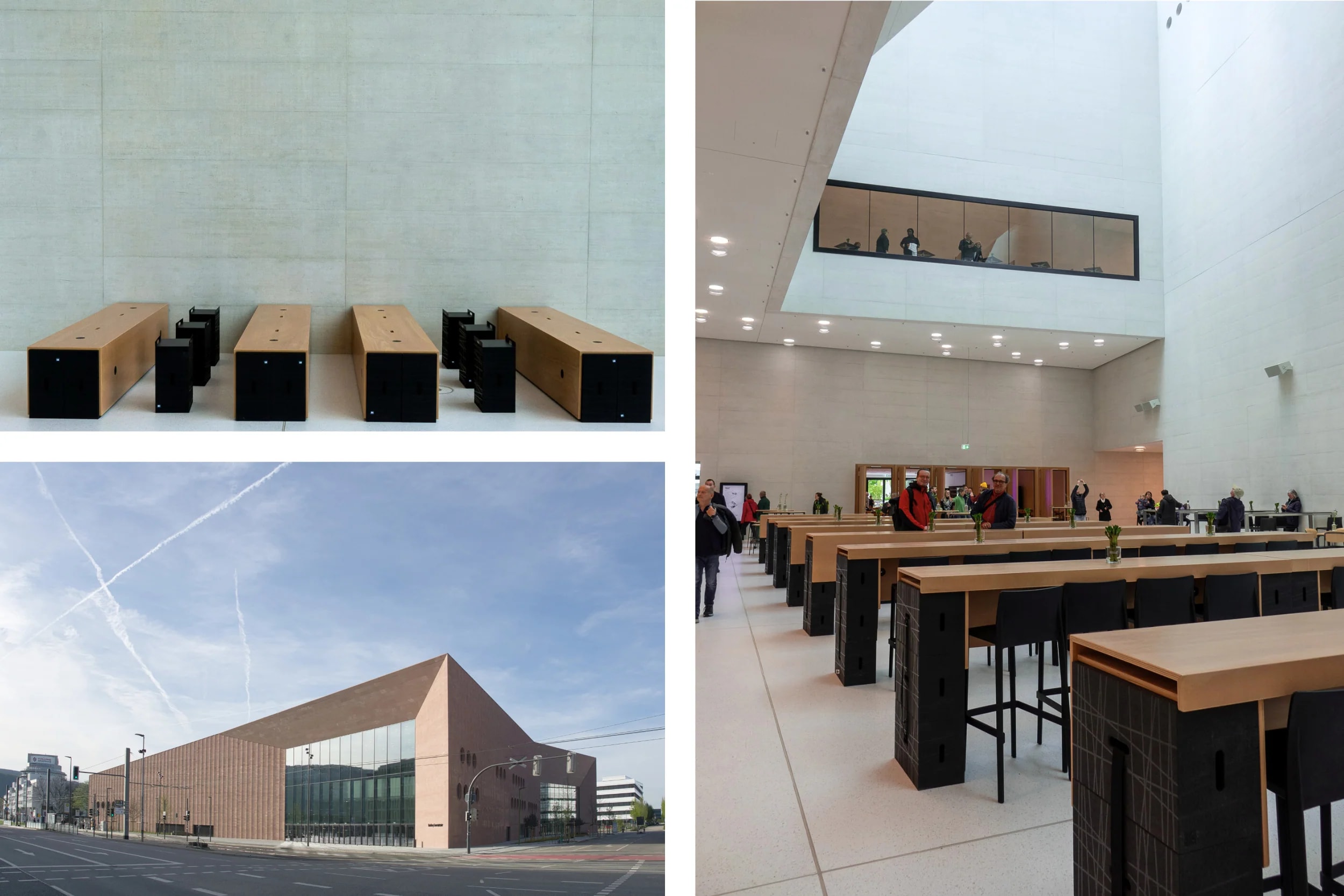 Das Heidelberg Congress Center bietet zwei Säle, neun flexibel kombinierbare Tagungsräume, ein Studio für Live-Streaming und Videoproduktion sowie eine Showküche. Rund 3.800 Personen können hier gleichzeitig an Konferenzen, Symposien oder Meetings teilnehmen. Um den vielfältigen Anforderungen unterschiedlicher Event-Formate gerecht zu werden, lag der Fokus auf einer flexiblen Raumgestaltung und -nutzung. Gemeinsam mit dem Designbüro wd3 entwickelten wir das modulare System „Space Companion“ speziell für das Heidelberg Congress Center. Dieses System ermöglicht durch seine vielseitigen Einsatz- und Aufbaumöglichkeiten den Bau von Raumstrukturen aus großen Blöcken. Die einzelnen Module, die auf Xbrick® ruhen, bieten großzügige, stabile Sitzgelegenheiten oder Stehtische. In Kombination mit weiteren Modulen können Räume strukturiert und zoniert werden. Diese Module können zu Arbeitslandschaften oder Lounge-Bereichen gruppiert und als Sitzgelegenheiten, Regalfächer oder Pflanzgefäße genutzt werden.